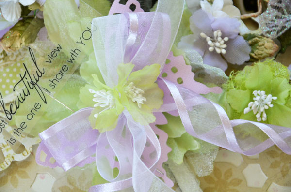 I have pulled away the backing layer petals leaving only the top layer petal of some of the SPRINKLES flowers to allow for a smaller petite flower. I re-coloured the CUTIE PIES using some white paint to fit with my colour theme. The FANTASY flower has been used as the base for my flower cluster.